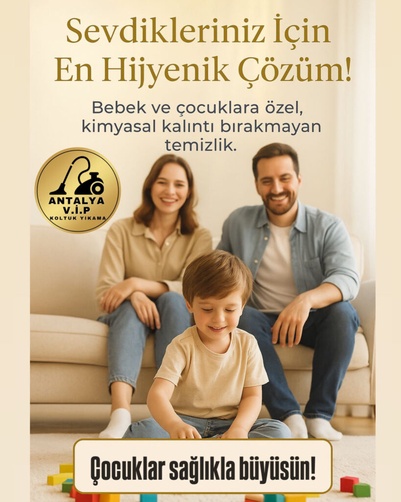 Hakkımızda – Antalya Koltuk Yıkama Hizmetinde Uzman Çözüm Ortağınız Antalya VİP Koltuk Yıkama, Antalya genelinde profesyonel koltuk yıkama, yatak yıkama, sandalye yıkama ve oturma grubu temizliği alanlarında 6 yılı aşkın süredir güvenilir hizmet sunmaktadır. Ev, ofis, otel, restoran ve kafe gibi tüm yaşam ve çalışma alanlarında koltuk ve kumaş yüzey temizliği konusunda uzmanlaşmış ekibimizle hizmet veriyoruz. Kullandığımız tüm temizlik ürünleri %98 bitkisel içerikli, hipoalerjenik, çocuk ve evcil hayvan dostudur. Yıkama esnasında uyguladığımız 140°C buhar teknolojisi, bakteri, mite ve alerjenleri derinlemesine yok ederek maksimum hijyen sağlar. Antalya’nın tüm ilçelerine mobil ekiplerimizle hızlı ve yerinde hizmet sunuyoruz. Koltuk yıkama Antalya, Antalya yatak yıkama, sandalye yıkama hizmeti gibi en çok aranan temizlik çözümlerini güvenle bize emanet edebilirsiniz. Müşteri memnuniyetini ön planda tutarak, koltuklarınızda sadece temizlik değil; tazelik, ferahlık ve sağlık da sunuyoruz. Uygun fiyatlı, kaliteli ve garantili koltuk yıkama hizmeti için bizimle iletişime geçin. Antalya VİP Koltuk Yıkama – Temizlikte Profesyonel Dokunuş.